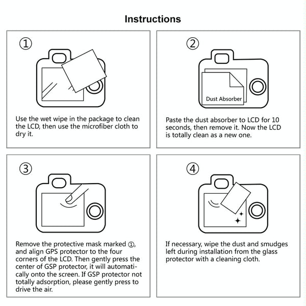 1. Please use the alcohol swab and the microfiber fabric to clean the LCD screen before installation.