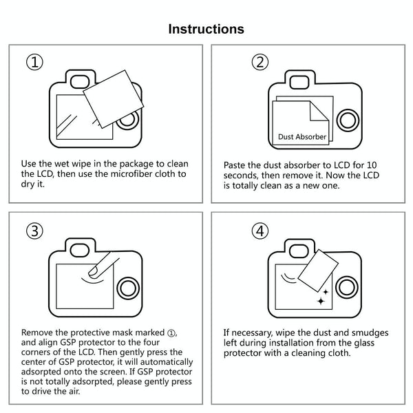 1. LCD panel and surrounding to be attached clearly digital camera with clean cloth.