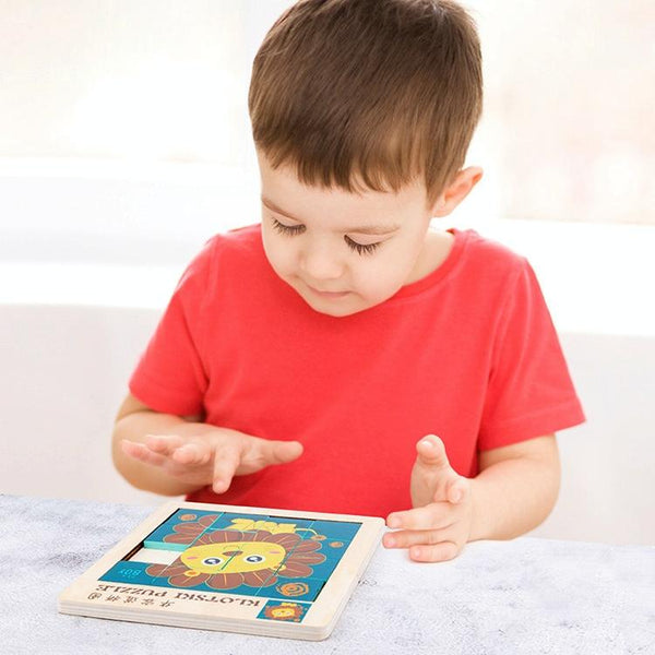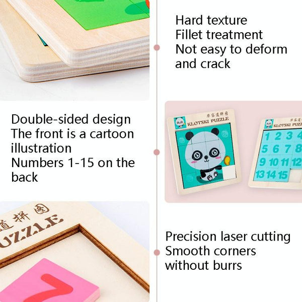 2 PCS Cartoon Animal Double-Sided Klotski Puzzle Children Wooden Toy Early Education Jigsaw Puzzle(Rabbit)