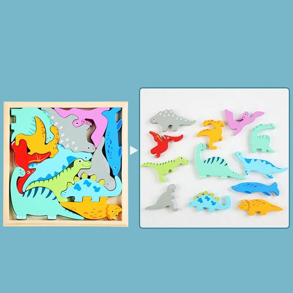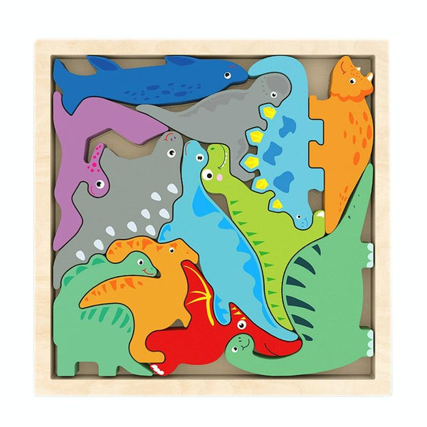 2 PCS Cartoon Three-Dimensional Puzzle Children Wooden Educational Early Education Grasping Board Toy(Dinosaur)