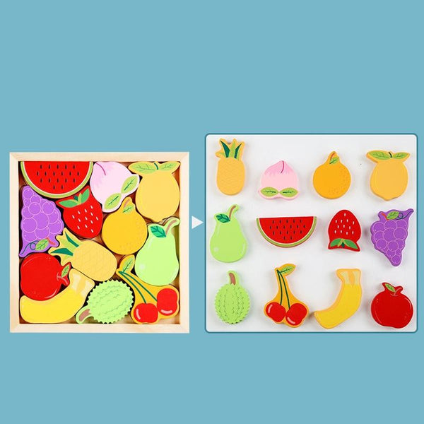 2 PCS Cartoon Three-Dimensional Puzzle Children Wooden Educational Early Education Grasping Board Toy(Fruit)