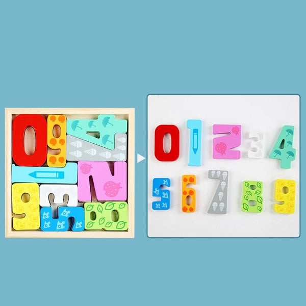 2 PCS Cartoon Three-Dimensional Puzzle Children Wooden Educational Early Education Grasping Board Toy(Number)