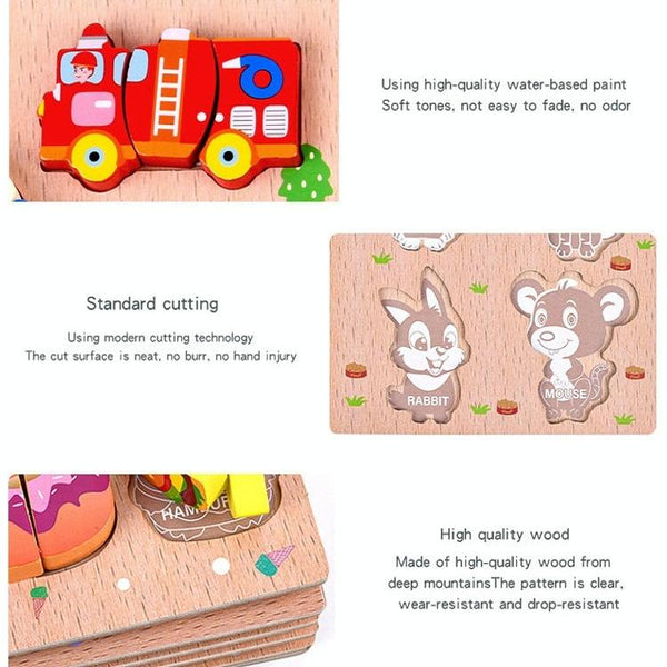 2 PCS Wood Blocks Cutting or Stringing Cube Puzzle Early Education Intelligence Toys For Children(Transportation-Stringing)
