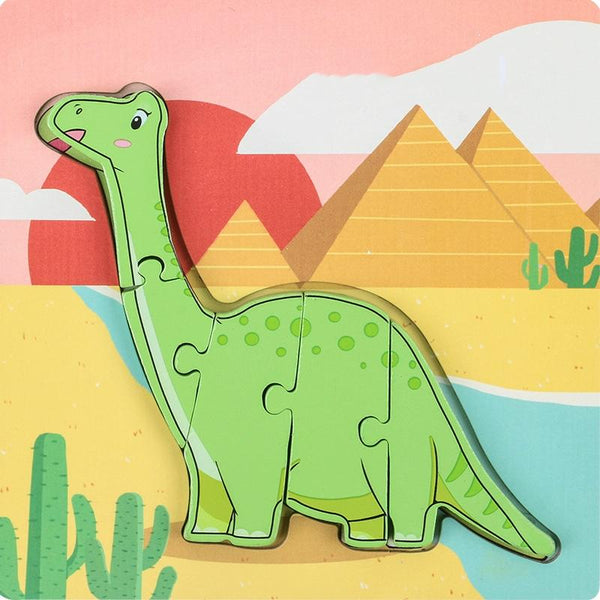 2 PCS Wooden 3D Stereo Dinosaur Puzzle Children Educational Early Education Toys(Brachiosaurus)
