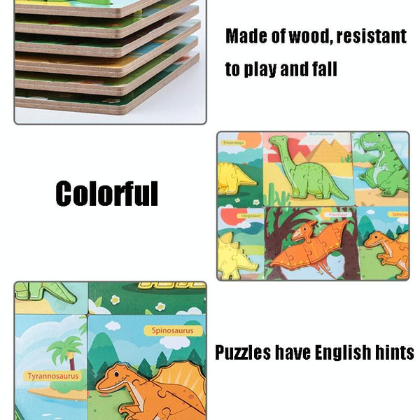 2 PCS Wooden 3D Stereo Dinosaur Puzzle Children Educational Early Education Toys(Tyrannosaurus)