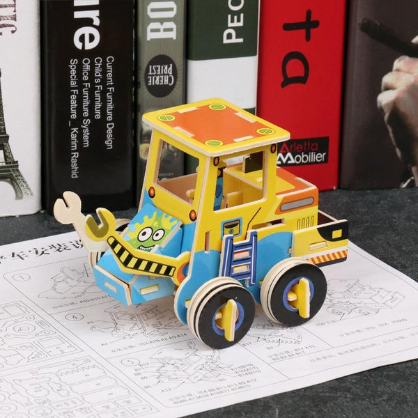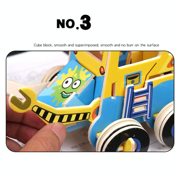 3 PCS 512 Children Wooden Assembled Car Engineering Vehicle Excavator Assembling Toy(Forklift)