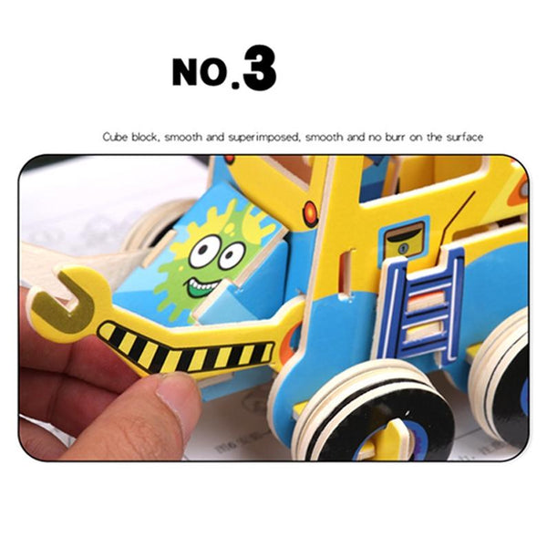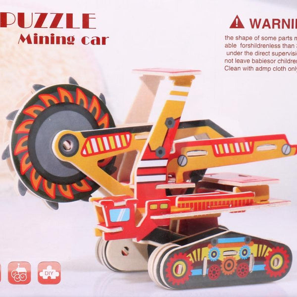 3 PCS 512 Children Wooden Assembled Car Engineering Vehicle Excavator Assembling Toy(Mining Vehicle)