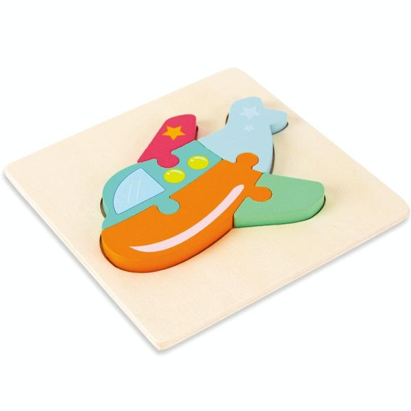 3 PCS Early Childhood Education Wooden Three-Dimensional Jigsaw Puzzle Toy(Airplane)