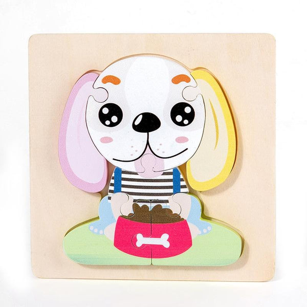 3 PCS Early Childhood Education Wooden Three-Dimensional Jigsaw Puzzle Toy(S-Puppy)