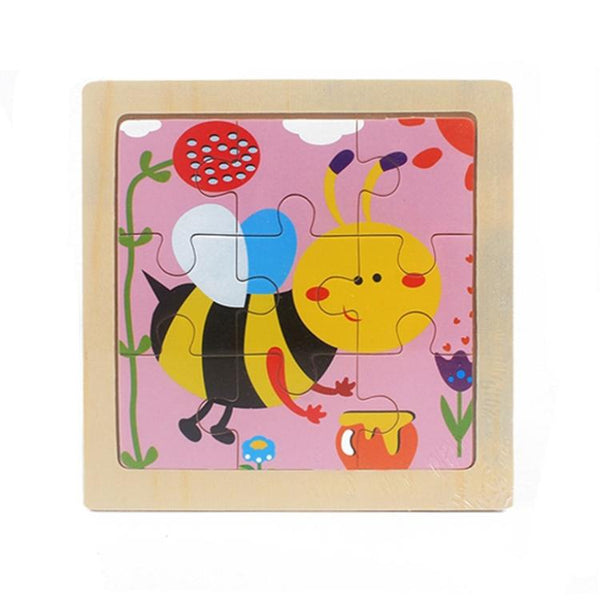 3 PCS Kids Wooden Cartoon Puzzle Jigsaw Toy Early Educational Toys(Bee)