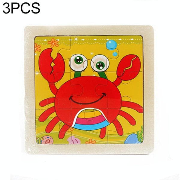 3 PCS Kids Wooden Cartoon Puzzle Jigsaw Toy Early Educational Toys(Crab)