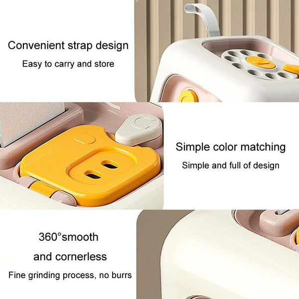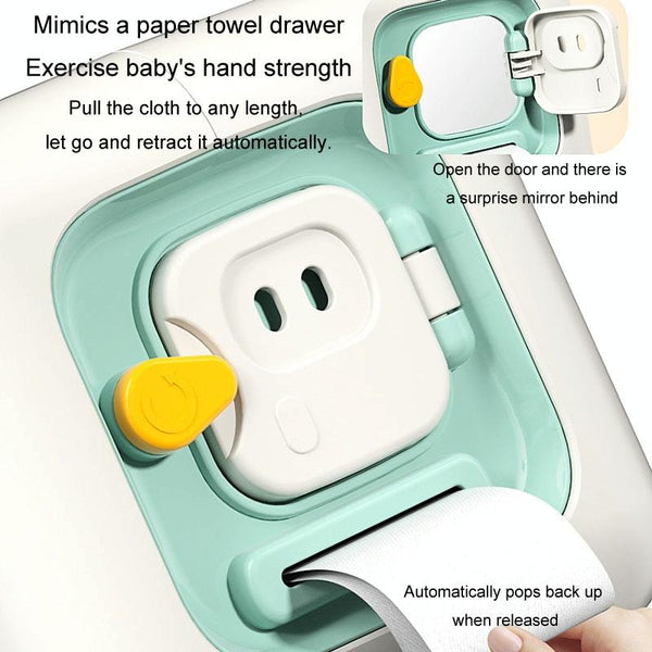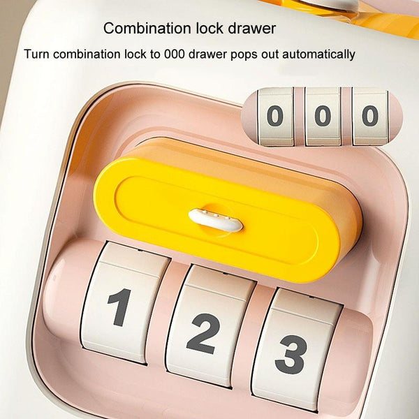 7. Combination lock drawer, turn the combination lock to 000 drawer automatically pop-up, imitation draw paper towels, exercise baby hand strength
