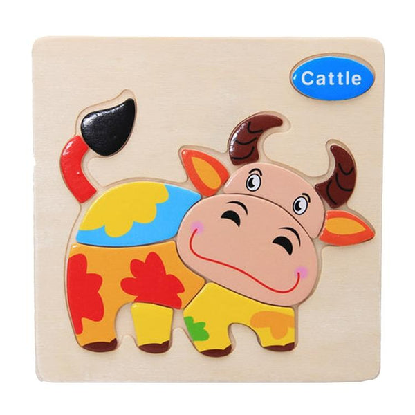 Children Educational Toy Wooden Cartoon Jigsaw Puzzle(Cow)