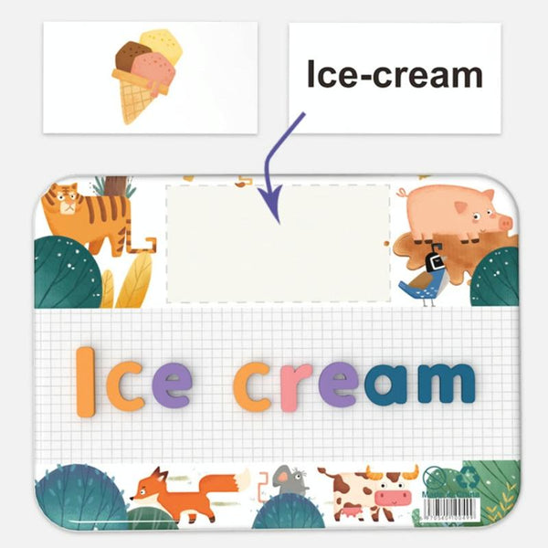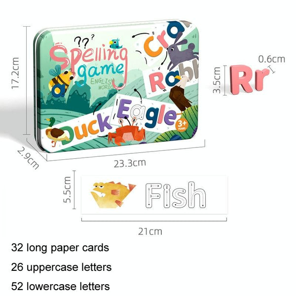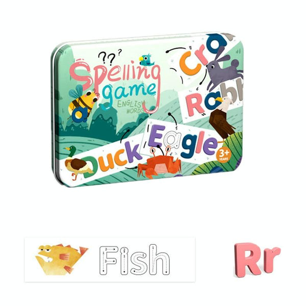 English Letter Word Spelling Learning Toy Wooden Puzzle Practice Cards(Green Box)
