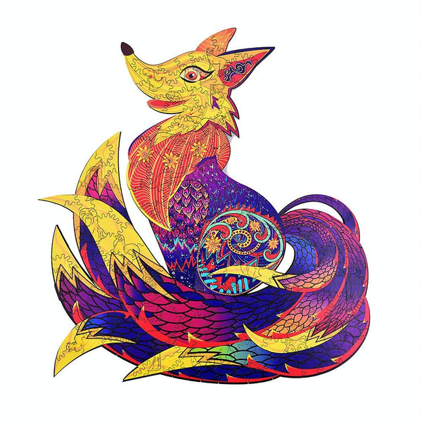 Irregular Wooden Animal Alien Puzzle High-Difficulty Three-Dimensional Puzzle Toy(Multi-tail Fox)