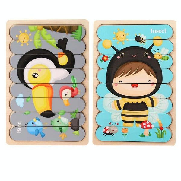 QBT01 Children Double-Sided Wooden Puzzle Bar Puzzle Toy(Crow + Bee)