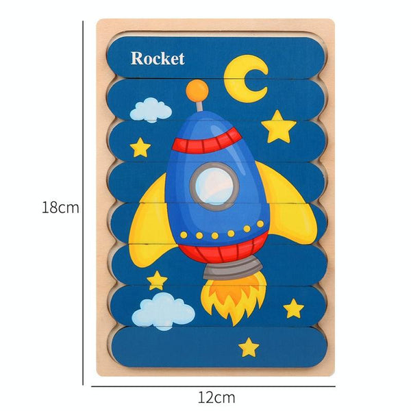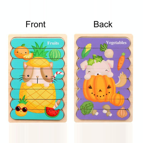 QBT01 Children Double-Sided Wooden Puzzle Bar Puzzle Toy(Owl + Deer)