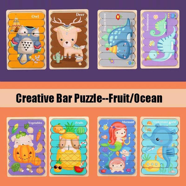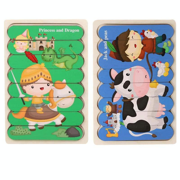 QBT01 Children Double-Sided Wooden Puzzle Bar Puzzle Toy(White Horse + Cow)