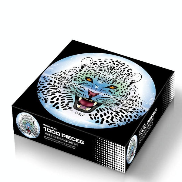 Round Shape Irregular Plane Puzzle Jigsaw Toy 1000 Pieces(White Tiger)