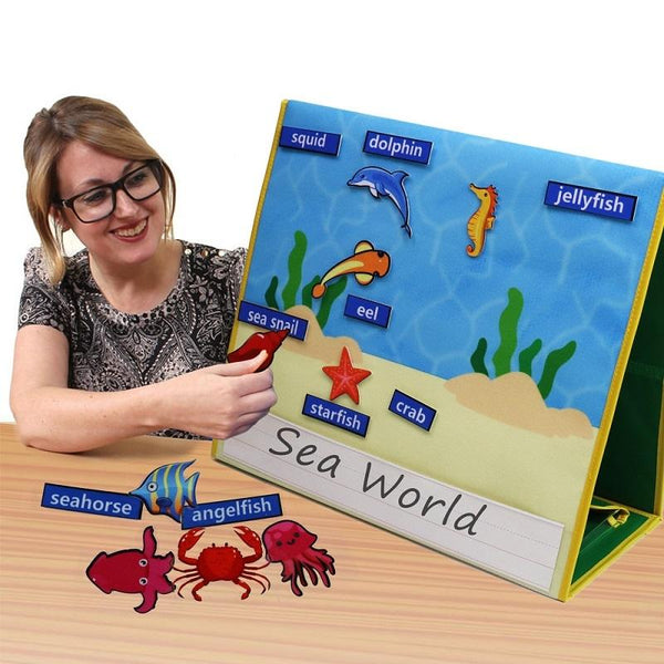 Story Theme Portable Felt Board Classroom Desktop Auxiliary Teaching Kids(Marine Life Theme)