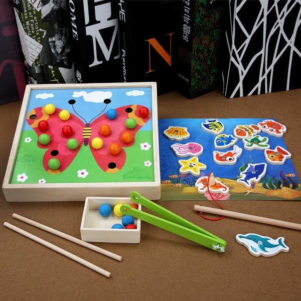 Wooden Children Early Education Toys Baby Clip Beads Magnetic Fishing Games Toy(Butterfly)