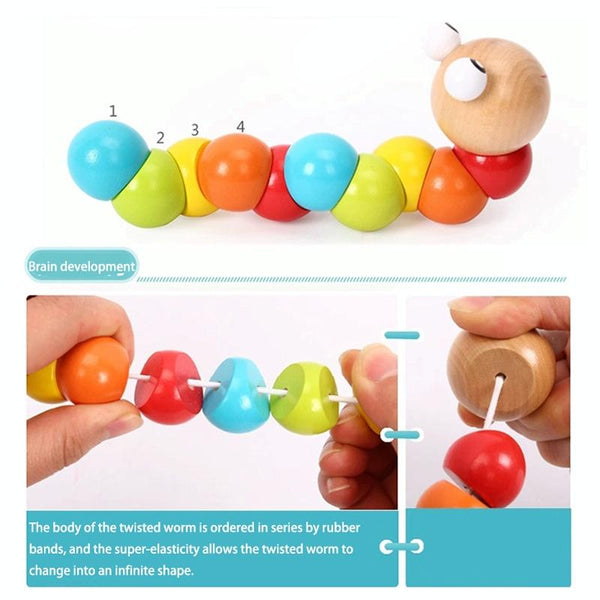 Wooden Color Versatile Twisty Caterpillar Children Brain Development Educational Toys