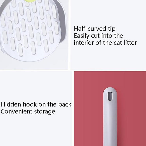Effortlessly clean your cat's litter tray with this durable and efficient Cat Litter Shovel. Featuring a comfortable grip and a semi-curved tip, this shovel makes scooping easy. The front-end knife-edge design allows for smooth cutting into clumped litter, while the hidden hook at the back ensures convenient storage. Made from antibacterial ABS material, this lightweight shovel is designed for a hygienic and hassle-free cleaning experience. Approximate dimensions: 26 x 11 x 4.5 cm.