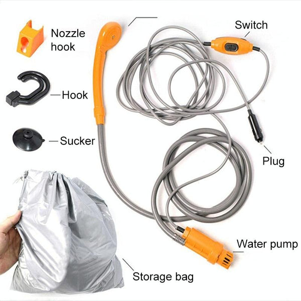 4. Direct 12V vehicle power supply drives the miniature pump, suitable for self-driving outdoor camping showers, temporary bathing after sea swimming, etc