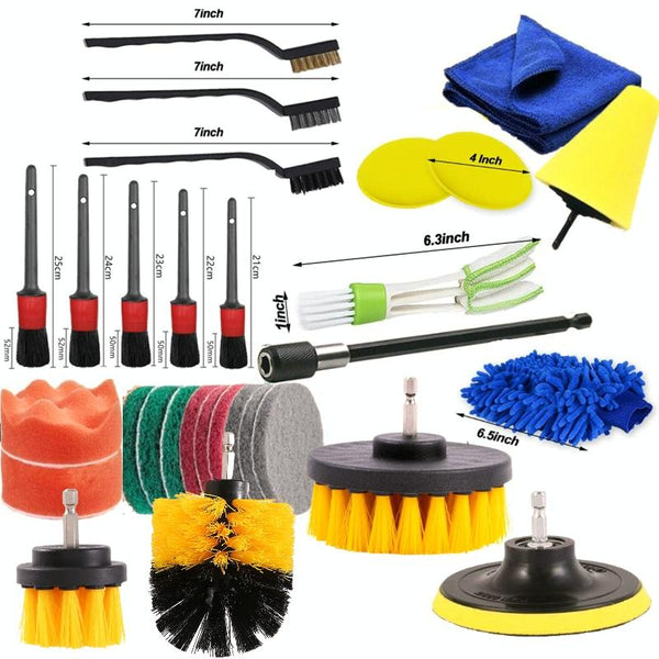 30 PCS / Set Car Beauty Details Brush Drill Brush Car Wash Glove Set(Yellow)