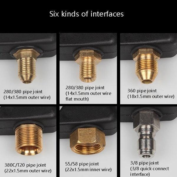 5. Interface: outer wire 14x1.5mm, outer wire 18x1.5mm, outer wire 22x1.5mm, inner wire 22x1.5mm, 3/8 quick plug interface, outer wire 14x1.5mm (flat mouth)