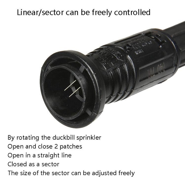 7. Duckbill sprinkler, through the internal copper parts + stainless steel clip to control the shape of the sprinkler's water outlet, the column/fan shape is adjustable, and the fan-shaped water outlet size can be controlled at will, flexible and convenient to use, suitable for various occasions.