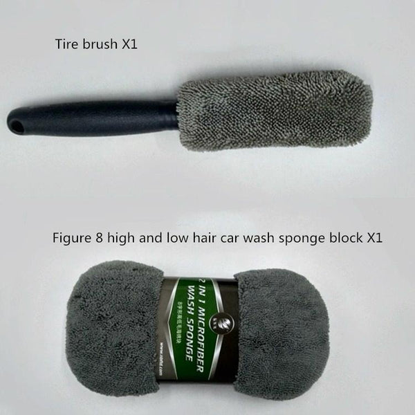 1. Included products: 1 car tire brush + 3 towel cloth waxing cakes + 8 figure high and low hair car wash sponge block 1 + glass towel / warp knitted towel / waffle + 1 high and low hair gloves