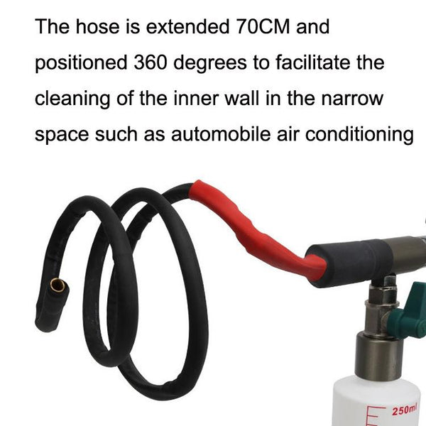 1. The hose is extended 70CM and positioned 360 degrees to facilitate the cleaning of the inner wall in the narrow space such as automobile air conditioning