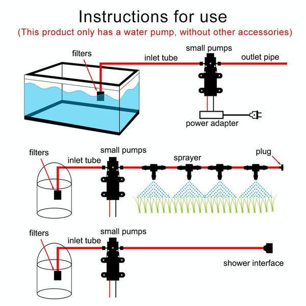 6. Product use: Suitable for electric car washer, electric sprayer, aquarium equipment, bonsai equipment, spray equipment, atomizing device, cleaning equipment, and equipment and products that require high-pressure water source.