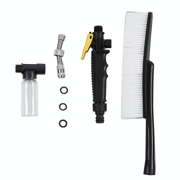 High Pressure Car Wash Nozzle Soft Bristle Long Handle Brush Foam Bottle Tool Set, Specification: Set 1