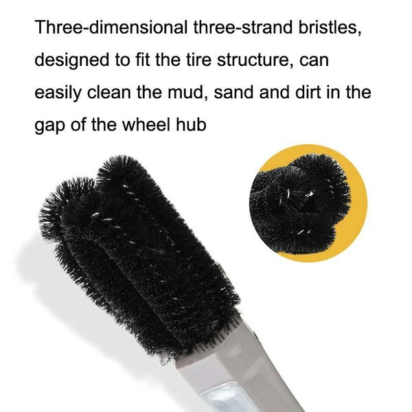 2. Three-dimensional three-strand bristles, designed to fit the tire structure, can easily clean the mud, sand and dirt in the gap of the wheel hub