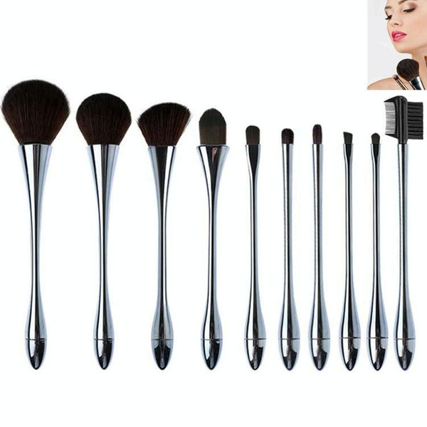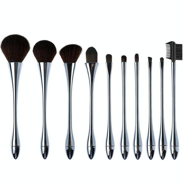 10 In 1 Small Waist Goblet Makeup Brush Set Beauty Tools(Silver)