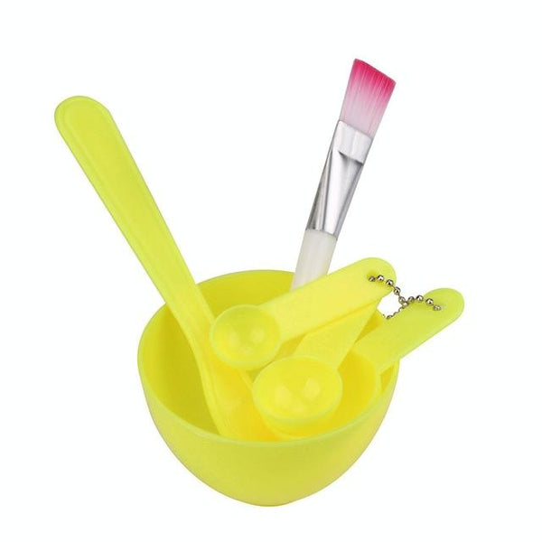10 Sets 4 in 1 DIY Facial Mask Mixing Bowl Brush Spoon Stick Brush Face Care Set Women Facial Beauty Professional Kits Tools(Light Yellow)