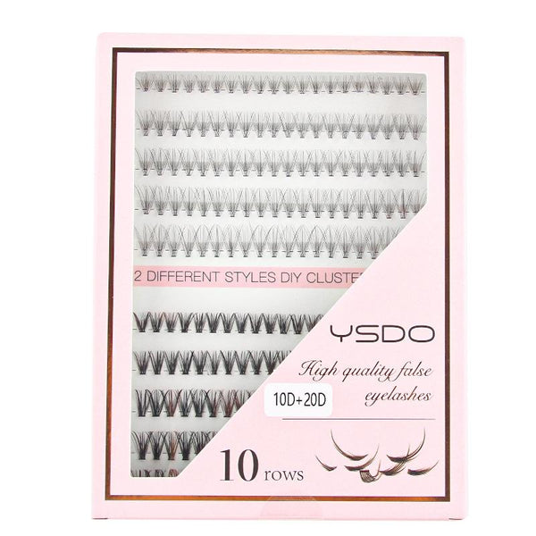 10rows /Box 10D+20D Naturally Thick Grafted Eyelashes 0.07 Single Cluster Implanted False Eyelashes