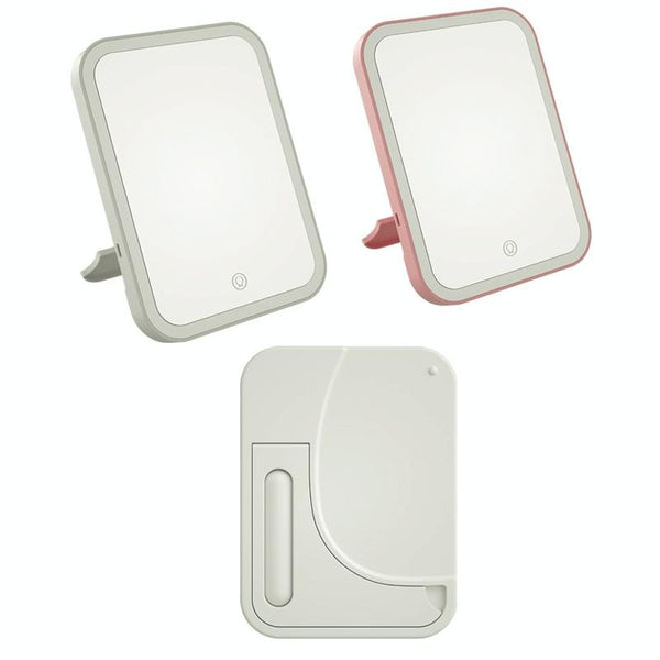 2 PCS LED Makeup Mirror With Lamp Fill Light Dormitory Desktop Dressing Mirror Female Folding Portable Small Mirror,Style: Charging Monochromatic Light (Pink)