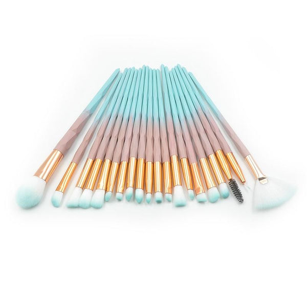 20 in 1 Diamond Handle Eye Brush Multi-functional Makeup Brush, Pink+Blue Handle and Baby Blue Brush