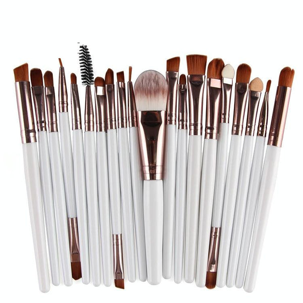 20pcs/set Wooden Handle Makeup Brush Set Beauty Tool Brushes(Brown+White)
