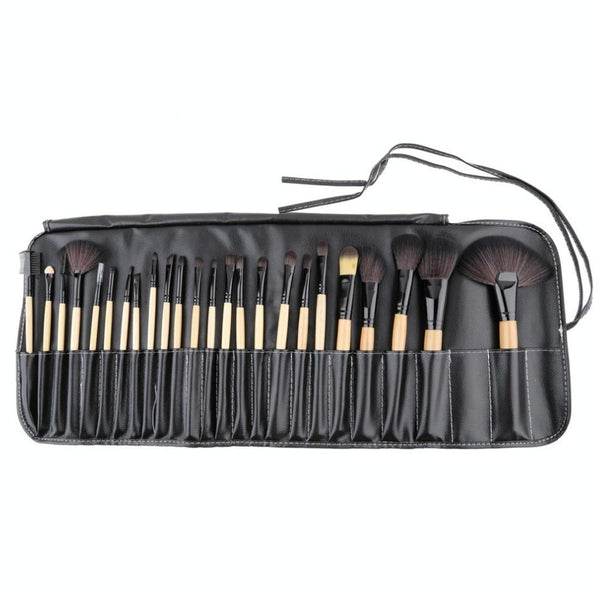 24 PCS Horse Hair Wooden Handle Cosmetic Brush Set with Black Leather Bag