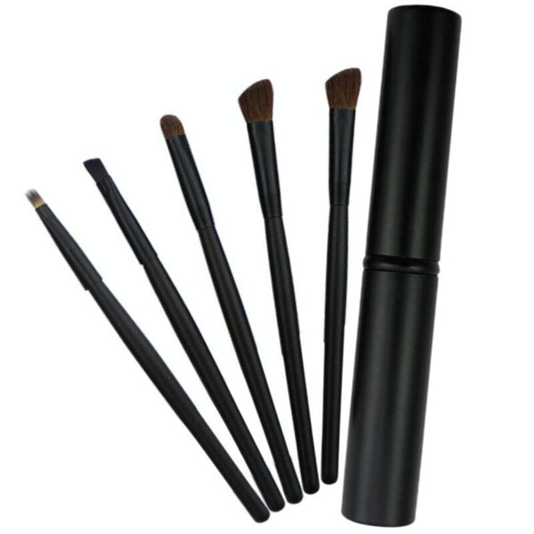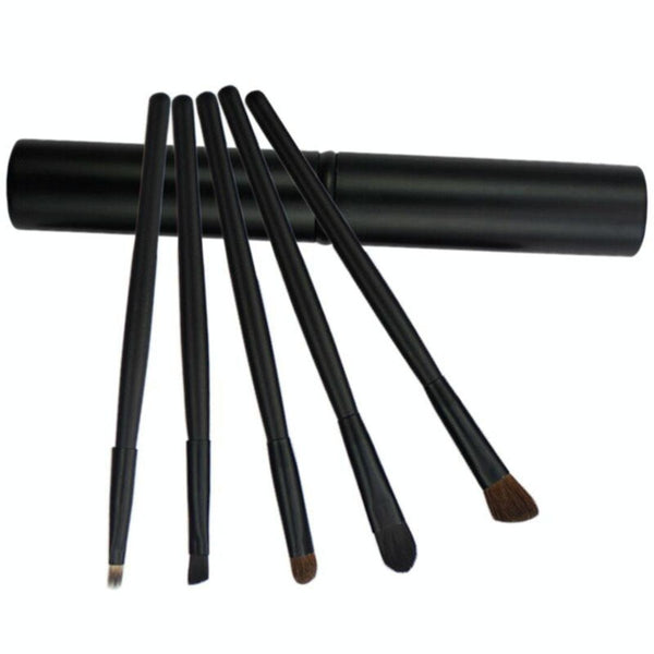 5 PCS Handle Eyes Makeup Brush Set with Aluminum Tube(Black)