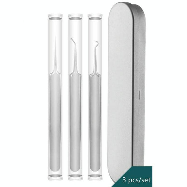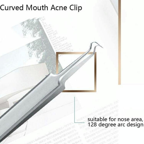 -3 pieces/set: oblique mouth acne clip (suitable for flat chin and forehead area, 128 degree corner design), curved mouth acne clip (suitable for nose and wing area, 128 degree arc design), straight mouth acne clip (high accuracy, suitable for cleaning small acne)