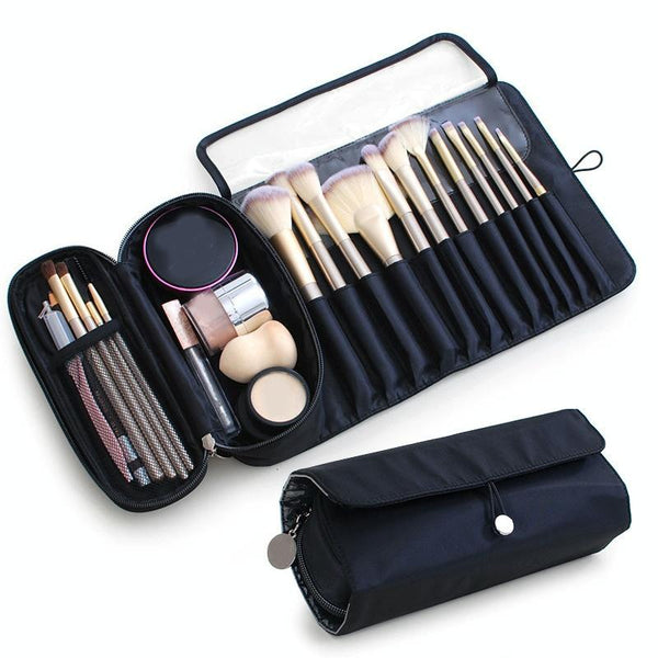 Cosmetic Bag Cosmetic Brush Storage Bag Multifunctional Folding Beauty Makeup Kit(Black)