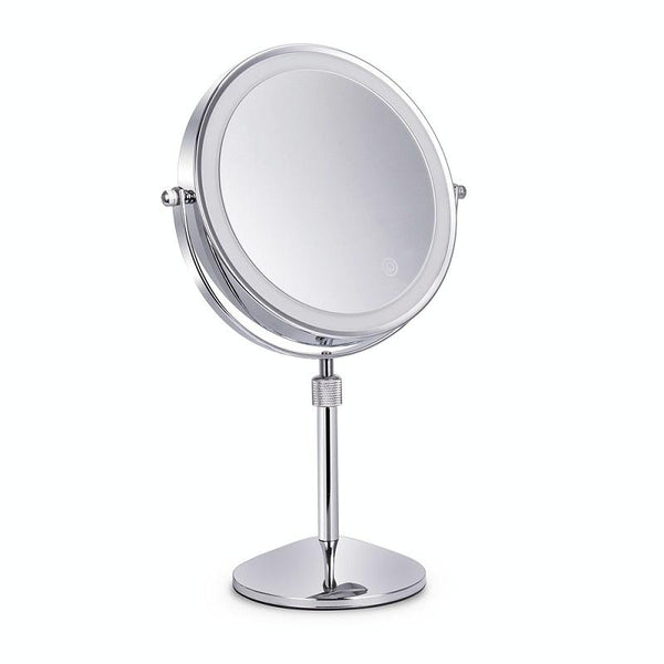 Desktop Double-SidedRound LED Luminous Makeup Mirror Liftable Magnifying Mirror, Specification:Plane + 3 Times Magnification(8-inch Rechargeable)