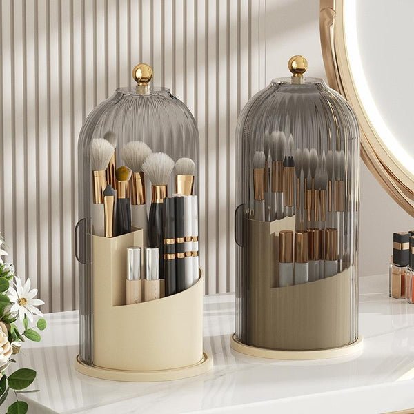Desktop Dust-proof Rotating Cosmetics Storage Box Push-pull Lipstick Rack(White Transparent)