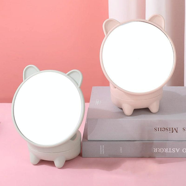 Detachable Cute Kitten Desktop Makeup Mirror with Storage Function(White)