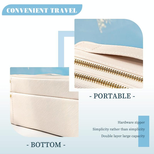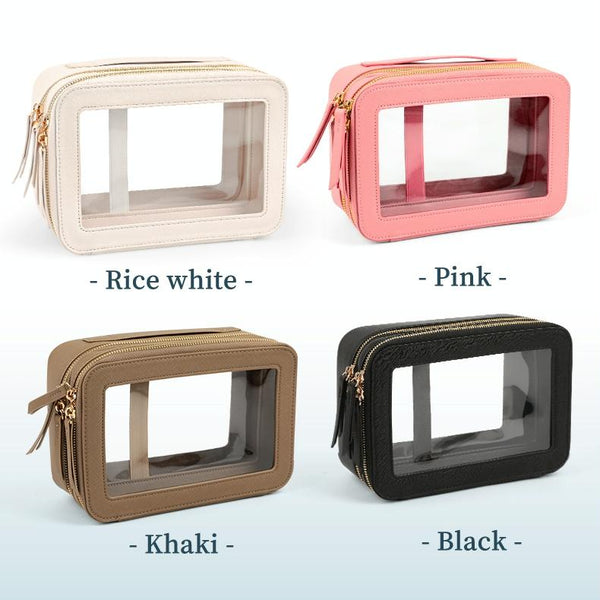 Double Layer PVC Waterproof Travel Cosmetics Storage Pack Large Capacity Wet & Dry Separation Transparent Skylight PU Bag(Deep Khaki)
